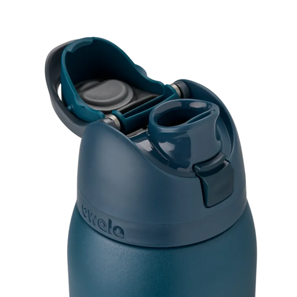 The FreeSip dual-mode spout allows you to sip upright from the integral straw or chug from the large mouth by tilting the bottle back. The push-button lid makes it even more convenient: when not in use, the protective cover clips into place and it also includes a convenient built-in carry loop so you can easily clutch or clip on your bag.